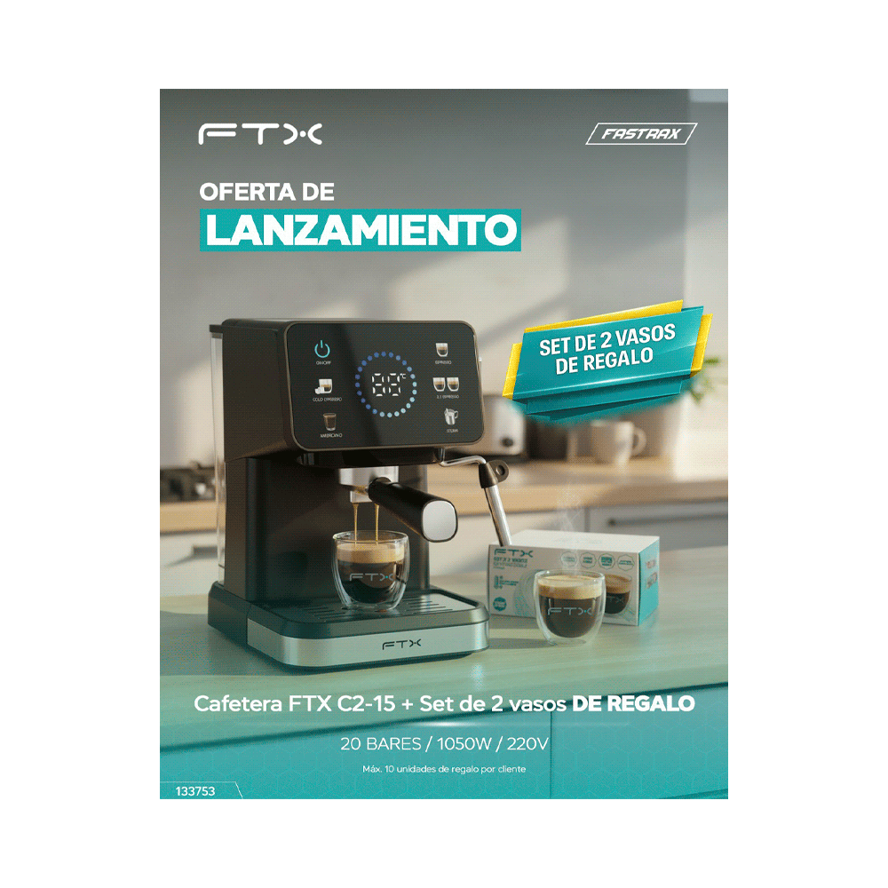 COMBO CAFETERA FTX 2 TAZAS C2-15 + TAZA P/CAFE 2UNI CG-21